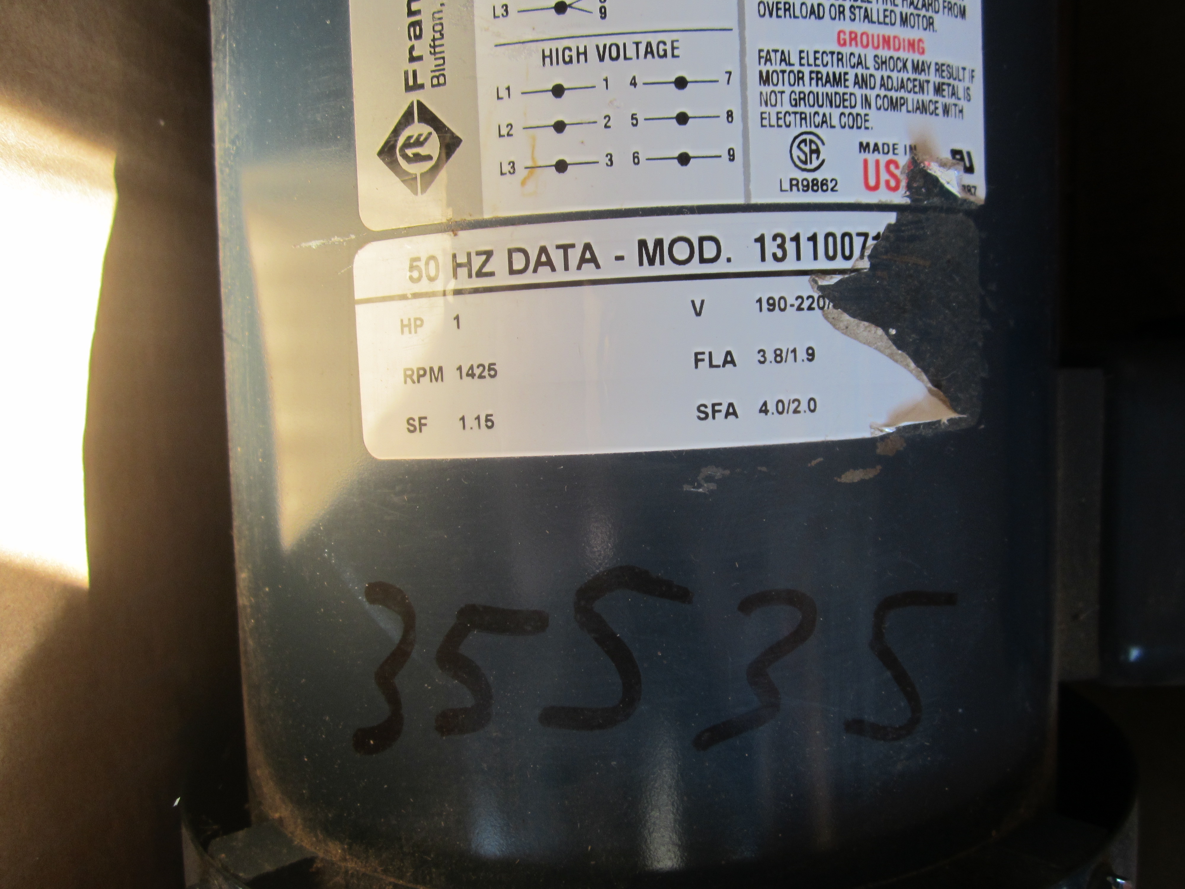 Used for Tuthill pumps, unused, 2 each 2 HP , Baldor, 1140 rpm, cat.# CM3614T, spec 36A02-197, frame 184TC, SN F289, TE, 208/230/460, amps 6/3, 60 Hz, 3 Phase, S.F. 1.15, Class B, design B, code H, 2 each-unused 75 HP GE, 1190 RPM, 460/3/60, frame 405T, S.F. 1.15, TE, Extra Severe Duty, 95% min.eff., type KS, code G, Ins. class F, NEMA design B, Amps 86.7, P.F. 86, max. KVAR 181, model 5KS405SS308, NO. GY272033, used but running when removed from service 350 HP U.S. Motors, 3600 rpm, 460/3/60, frame 447TS, S.F. 1.15, class F insulation, space heaters, Premium efficiency ,. Type R Drip proof, NEMA nominal eff. 95.4, NEMA design B 40C ambient, NEMA code letter G, original paper work available Vertical Motors 40 HP Reliance XE, TEFC, 3555