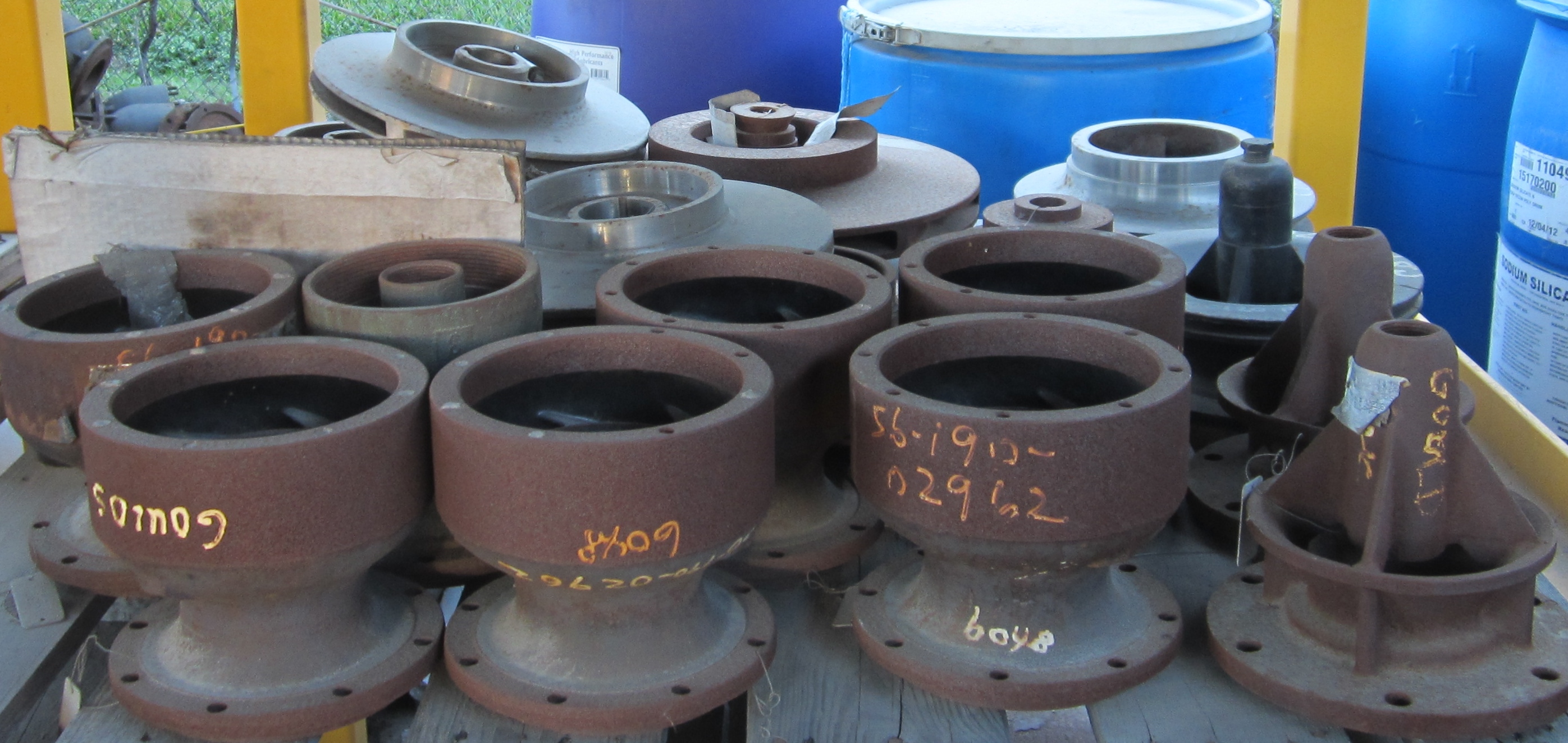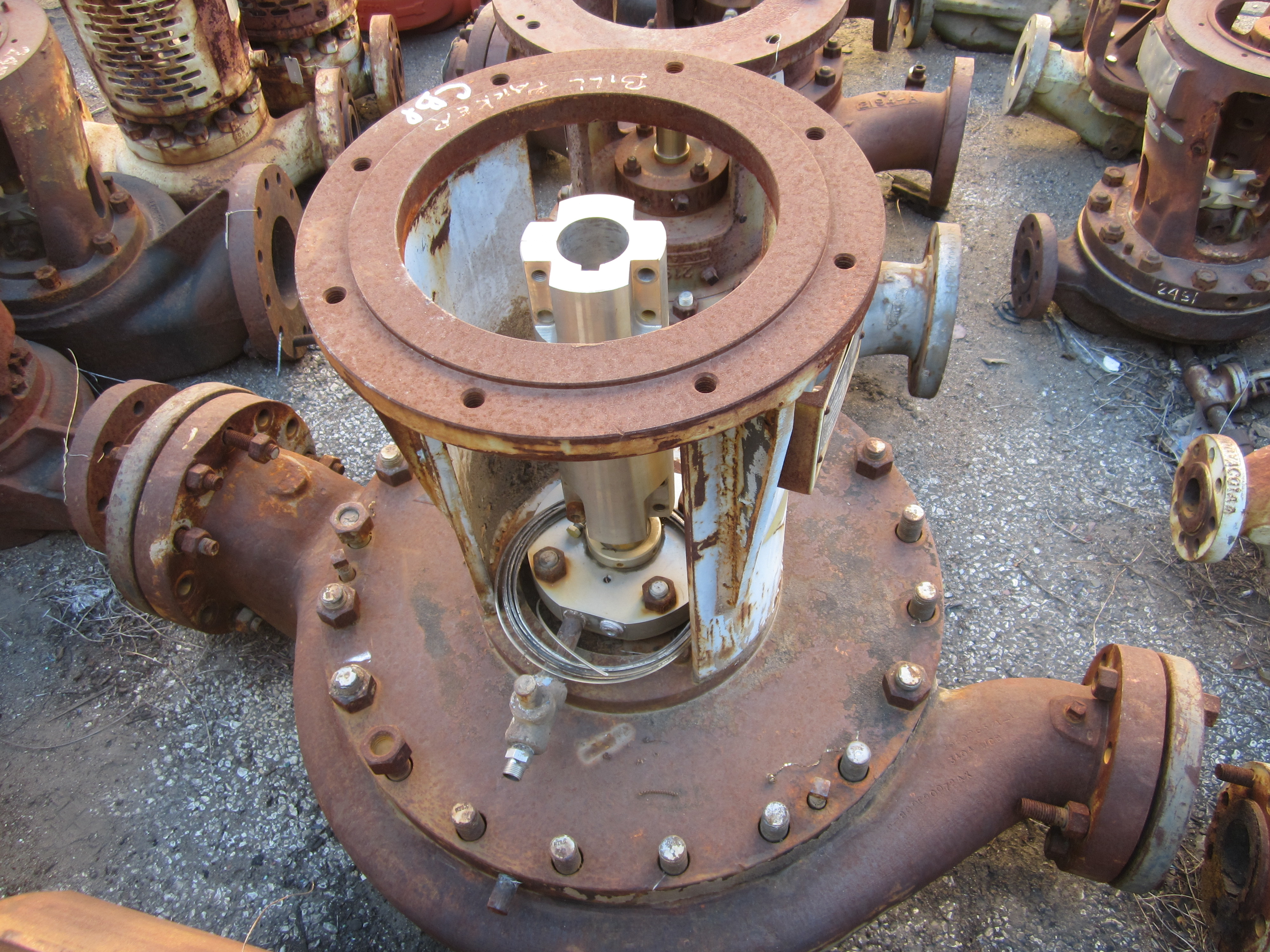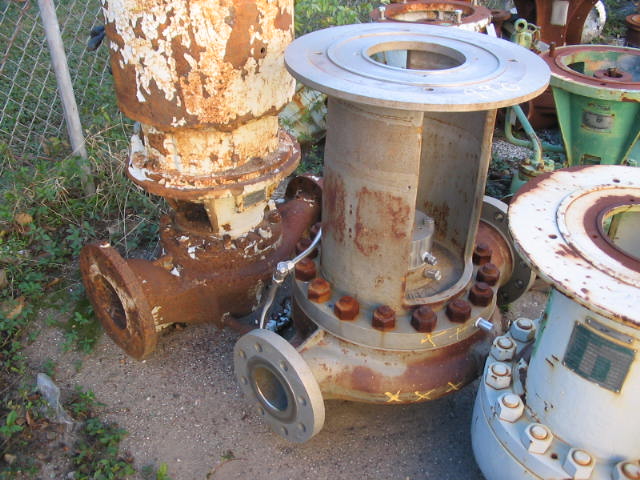 "Recycle, It Makes More Cent$" New surplus pumps and used surplus pumps. API, ANSI, centrifugal, diffuser, self primers, vertical turbines, submersible, plunger, metering, steam, piston, positive displacement, gear, screw. In stock: Afton pumps, Bingham pump impellers, Byron Jackson pump impellers, BJ pump impellers, Dean Brothers parts, IMO Delaval screw pump parts, Flowserve ®, IMO® screw pump parts, Durco pump parts, Goulds pumps and parts, I-R pump and parts, Ingersoll-Rand pumps and parts, Pacific pump parts, Pulsafeeder pump, Roper air operated diaphragm pump parts, United pumps impellers, Union pump impellers, Union steam piston pump parts, Wilson Snyder pump impellers, Sundyne pumps, Sundyne® LMV 322 parts, Sundyne® LMV 311 parts, Sunflo pump, Sunflo pump parts, Tuthill pumps, Viking gear pumps and parts, Worthington centrifugal pumps and parts, Worthington Gear pumps, Worthington steam piston pump parts. Vertical turbine pump bowl assemblies. New surplus impellers. No Gaskets, O'Rings, Mechanical Seals. Partial List Of Pump Inventory: Centrifugal Pumps Afton, model ILVS , 4x6x13 vertical inline, Stainless A6NM case, nameplate data 750 gpm at 500' Goulds 3996, vertical inline 1 1/2 x 3 x 10 MT, 316SS, 8.37" impeller, mechanical seal, seal flush, NEW SURPLUS Goulds, model 3196, model 3996, 316 SS impellers, part #, R76793, 076794,100-596,101-528,B10009, NEW SURPLUS Goulds model 3700, size 2x4x7 NEW SURPLUS Parts Goulds model 3171, size 1 1/2x2x8, NEW SURPLUS Parts Ingersoll-Rand 2.5 CNTA-6, cast iron case, bronze impellers, ball/ball bearing housings. Ingersoll-Rand 12HLV, 316 stainless steel impellers, trim 25 1/4", original design 5000 gpm @231', 1170 rpm, 3 each, may be modified for use in other pumps, NEW SURPLUS Ingersoll-Rand 2x8 AN, 600 lb. flanges, 120gpm @ 285', 1200 psig hydro, high suction pressure applications. Ingersoll-Rand HOC2, 4x3x10, 316SS, 600 gpm @ 450', 10.75" impeller, John Crane mechanical seal, seal flush, SN 885158, on base, NEW Ingersoll-Rand, 5RVL, cast iron construction, bronze impeller, 1100 gpm @ 80' Ingersoll-Rand 4RVL, cast iron case, bronze impeller, 550 gpm @ 60' Ingersoll-Rand , VOC , HOC, A-line, 12 HLV, 4 RVL, 5 RVL, MCS, 1 CORVN, NEW SURPLUS OEM PARTS, no gaskets or o-rings Worthington Ingersoll Dresser Pump 3 LLR 11, 2 stage, case & bearing housing, parts pump, NEW SURPLUS Pacific Pump, 2.5S, SVC 2.5L, SVCMB, SVCTB volute pump case, carbon steel, top/top design, 2 1/2" x 6" 300# RF, part number S1621, NEW Pacific Pump, impellers Sundyne ® LMV311, 3x2